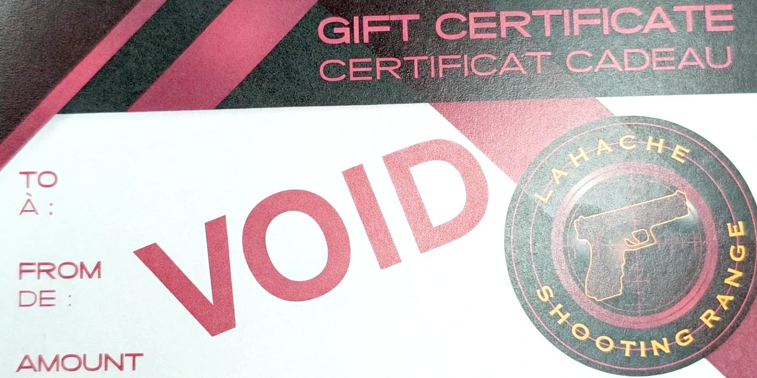 Drop by and get your gift certificates. They are good for: Pay to Shoot Experience , yearly membership and in our store.
